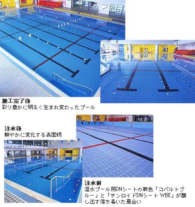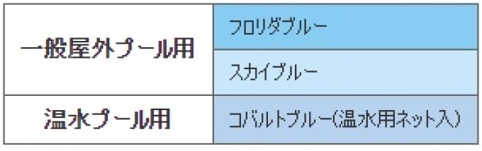 年間を通じて使用する温水プールのために開発。変色やしわの発生を抑えたシートです。(屋外プールには使用できません) ※色調につきましては、カットサンプルをご用意しております。