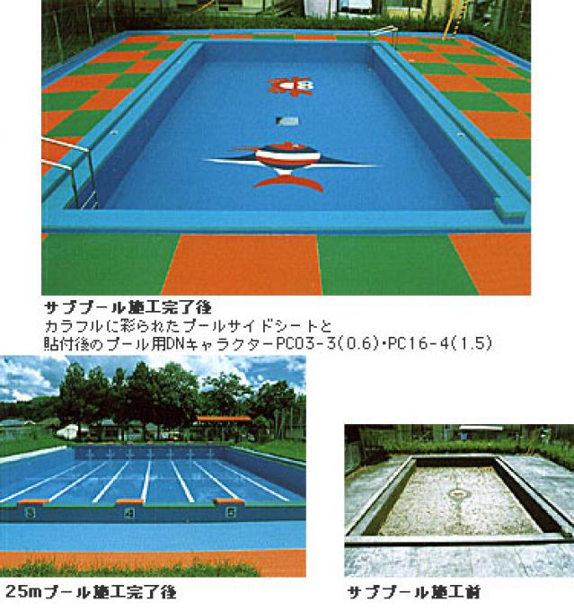 防水性能の高さはもちろん、カラーリングやキャラクターなど、豊富なシートバリエーションが、施設の用途や趣向にあわせたアレンジを可能にし、国内で4000基以上の導入実績を得ました。また施工性も高く、老朽化したプールの改修作業も低コスト・短納期で実施できます。