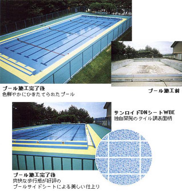 耐候性・耐熱性・対薬品性にすぐれたシートです。肌触りが良く、プール内での歩行感も快適、日常のメンテナンスも容易です。