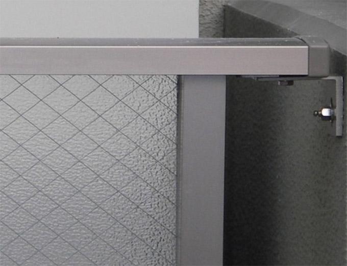 弊社標準品のパネル押さえ縁を無くし、ガラスを支柱内で固定させることにより、スリムな意匠を実現しました。