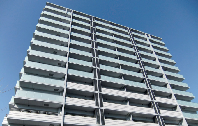 目地見付け幅を細くしたスタイリッシュな外観、4辺支持工法によるガラス薄型化、外部足場不要のガラス嵌め込み工法など、数々の新要素を盛り込んだ株式会社サンレールの「フラットレール」。