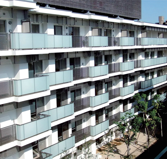 ■連続ガラスのスタイリッシュな意匠性を演出しながら、スマートな施工でコストダウンを実現します。
