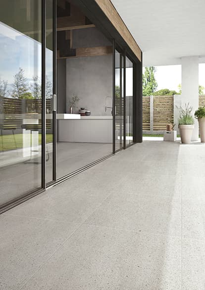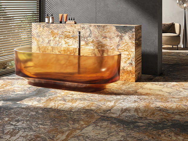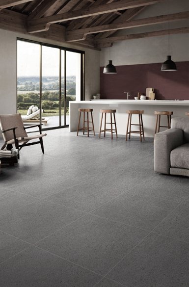 大小さまざまな粒がランダムに折り重なった花崗岩のようなタイル