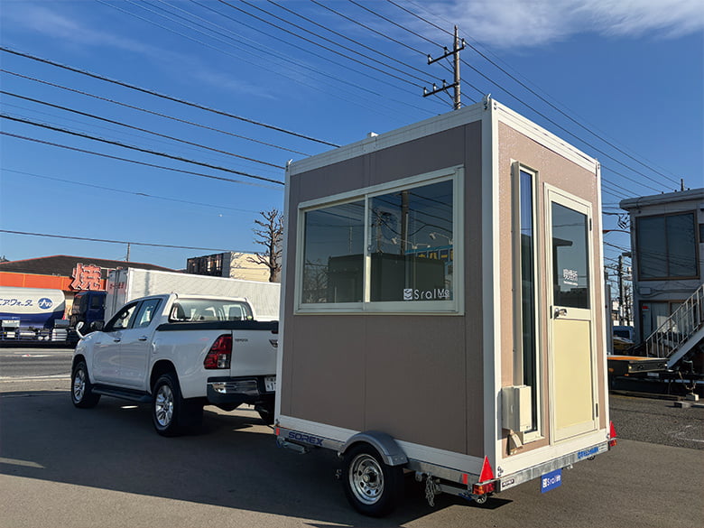 当社の強みであるユニットハウス事業を活かしたすらるみーのトレーラーハウスはシャーシ(車台)の上にユニットハウスを積載するのが特徴です!