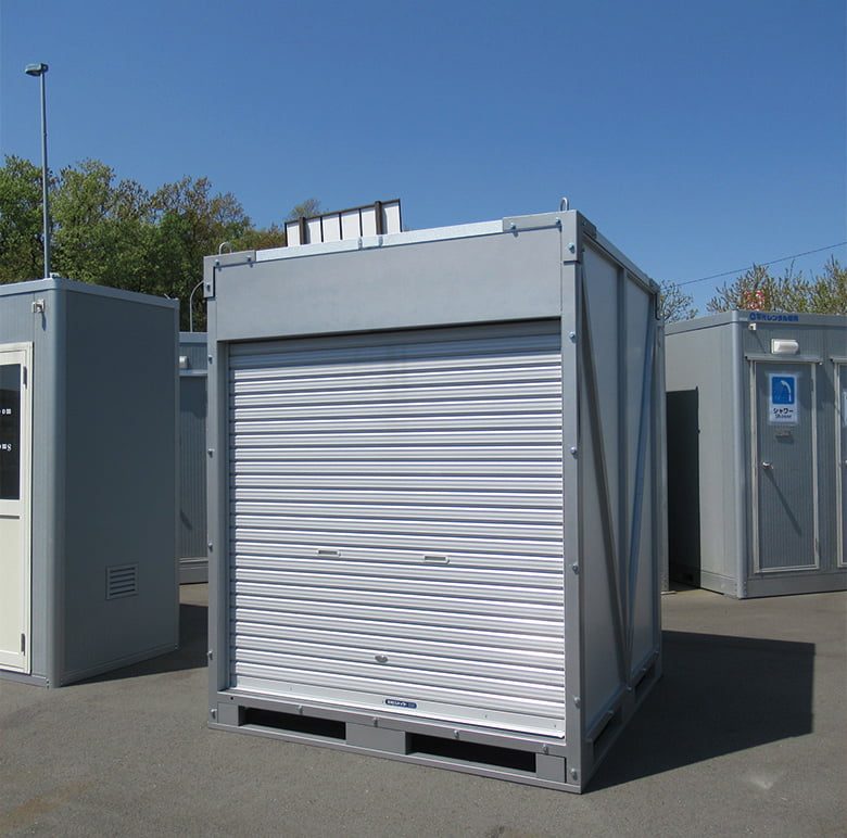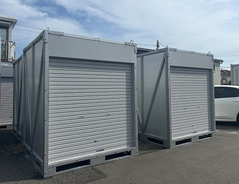 当社人気NO.1商品のシャッター倉庫は丈夫で耐久性に優れています。シャッター扉は開閉スペースがいらないため、狭い場所でも設置が可能です!