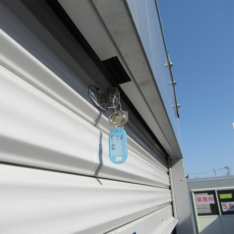 シャッター扉で楽に開閉、収納ができます。鍵はシャッターに巻き込まれないように加工をしています。また安全性に優れたディンプルキーを使用しております。