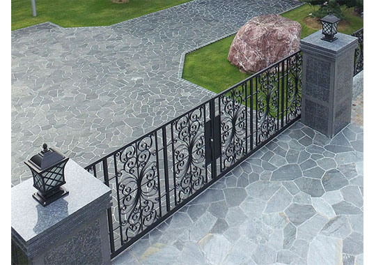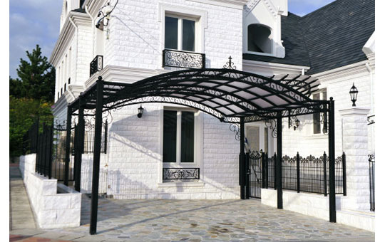 当社は仕上げにも工夫も凝らしました。ヨーロッパの伝統工芸であるロートアイアンを日本の風土に合わせる為に静電粉体塗装を施します。ショットプラストで付着物を除去し、亜鉛溶射で鉄を保護して静電粉体塗装を施します。これにより、艶の少ない仕上がりになり、よりアンティークに仕上げます。