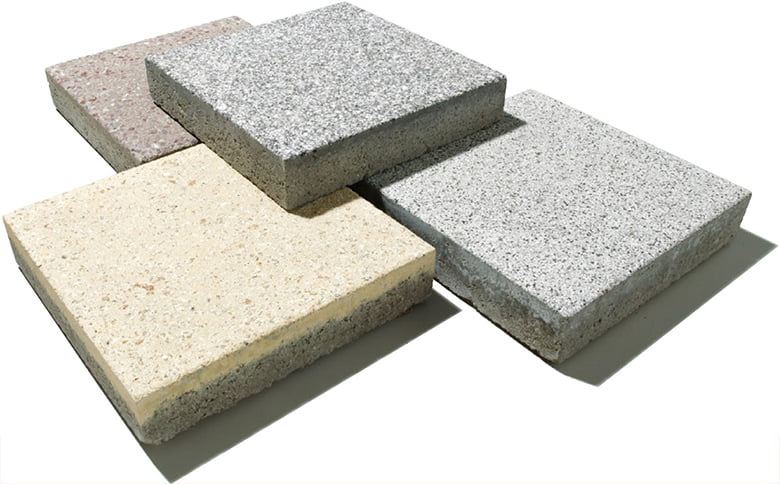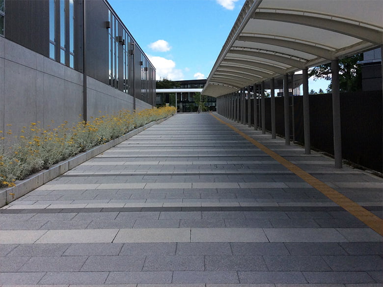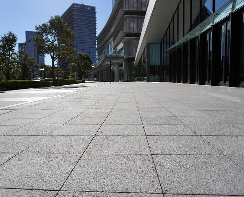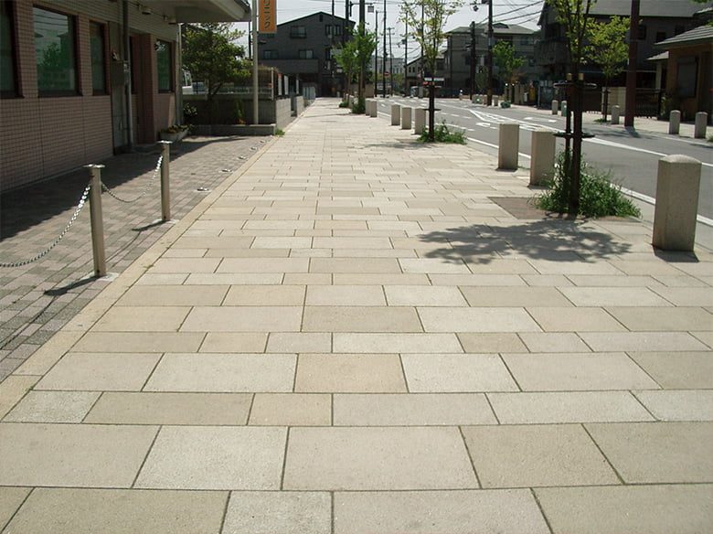 花崗岩をはじめとする天然骨材を使った、高級感あふれる擬石コンクリート平板です。環境の持つ印象を崩すことなく、上品な景観演出が行えます。