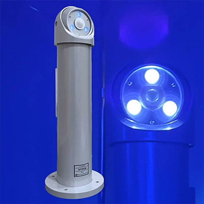 誘引阻止率90.1%を達成した、新開発の誘虫LEDを搭載。離れた場所から工場開口部に向けて照射し、虫を誘引する事で出入り口付近から虫を遠ざけ侵入を阻止します。