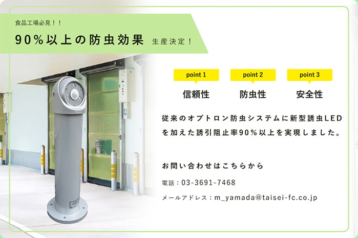 これにより、さらに食品工場への防虫という側面でお力になれるかと思います。