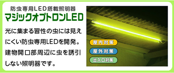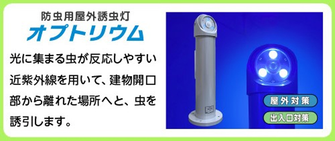 強力な紫外線LEDを採用した「オプトリウム」を工場から離れた場所(10~30m)に設置し誘引させることで、工場付近の虫の密度を減らします。