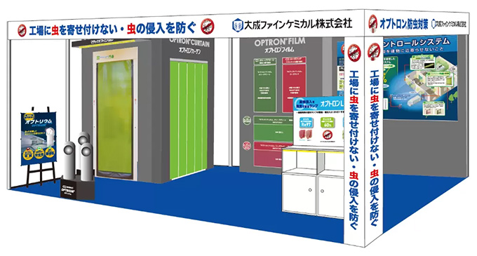 今回は、「オプトロン防虫対策」として光のコントロールで「工場に虫を寄せ付けない・虫の侵入を防ぐ」薬剤を使用しない安全・安心な防虫対策商品を展示致します。