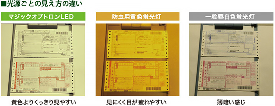 防虫用黄色蛍光灯の光の下では見にくかった文字などが、読みやすくなりました。