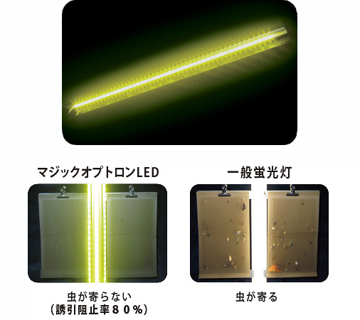 マジックオプトロンLED照明器の防虫効果は、平均80%。
