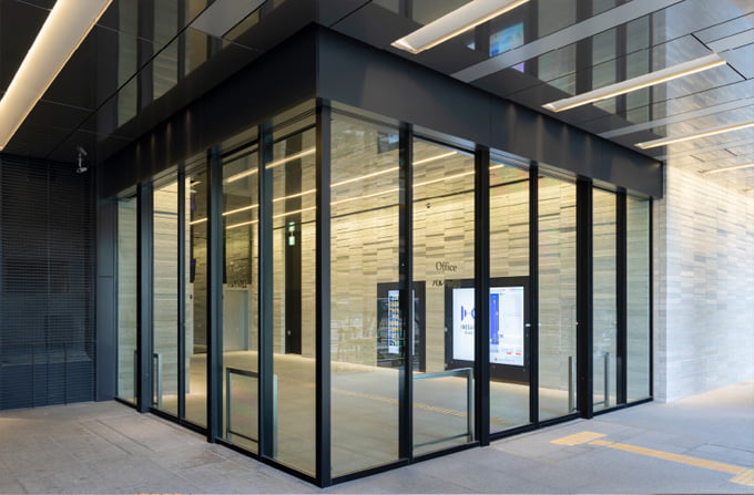 「STスライドシステム」は、開放的なエントランスの実現、エントランスホールとオープンエリアとの一体化など、仕切られた2つの空間をドアやスクリーンを移動することにより、オープン空間へと変貌させます。