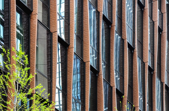 カーテンウォールフィン : キャストアルミ フッ素樹脂焼付塗装仕上