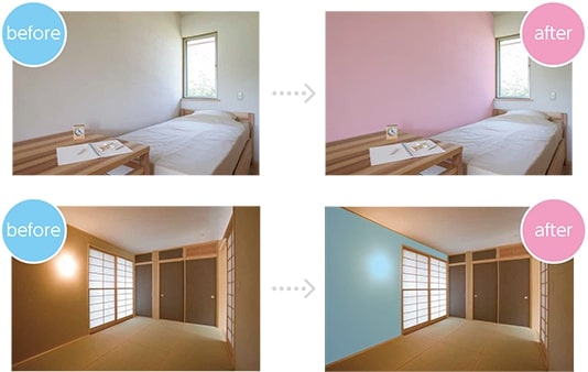 ■シラス内壁の消臭機能、調湿機能、空気清浄化機能はそのままに新しいカラーに模様替え!ご自宅の壁をお好みの色に変えて、シラス壁が生まれ変わります!