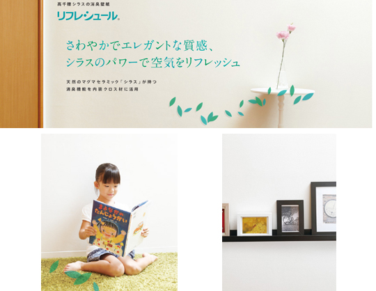 またシラスを使用した世界初の壁紙なのでお部屋のニオイをすっきりさせるため、タバコ、ペットなどのニオイや、気になる生活臭をすっきり消し去ってくれます。その威力は、ホルムアルデヒドをはじめとする化学物質にも有効。シックハウス対策にも貢献します。