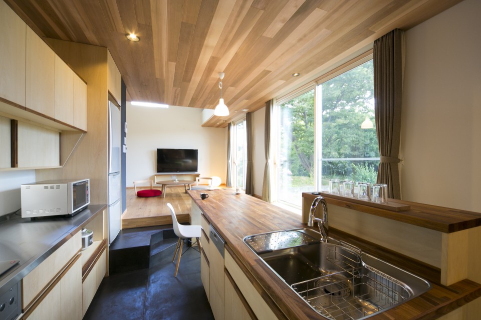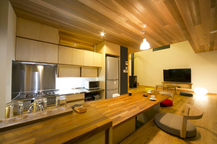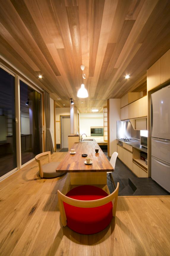 ■本実のパネリングが、新鮮な空間を演出。木の質感が心地よさをもたらします。
