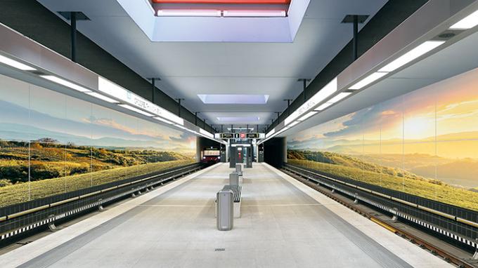 駅構内のような閉塞的な空間に奥行きと解放感を演出。行き交う人々の気持ちをポジティブにします。