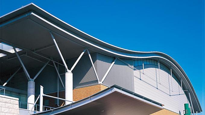 ◆ゆったりとおおらかなカーブを描く大屋根に採用されたエマウォール。建物の印象を決定づける所で、その実力が存分に発揮されています。