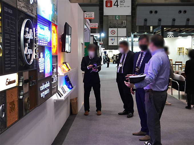 また屋外照明だけではなく、合わせてLEDサインやイルミネーションも展示しております。