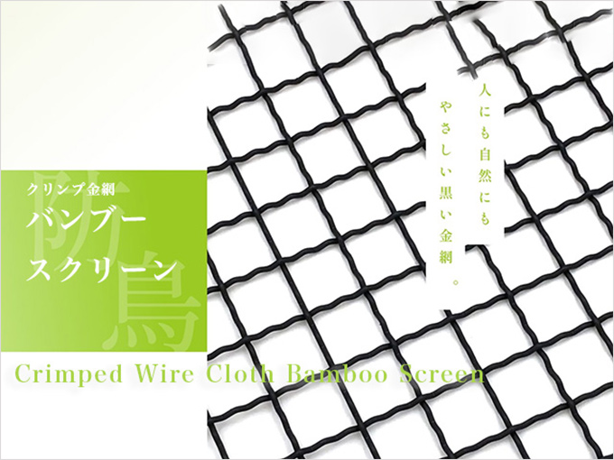 また、目立たない黒い金網『バンブースクリーン』ビル建材向け 防鳥クリンプ金網 (ガラリ裏・各種ルーバー裏・パーテーション・デザインファサード)などもご紹介予定です。