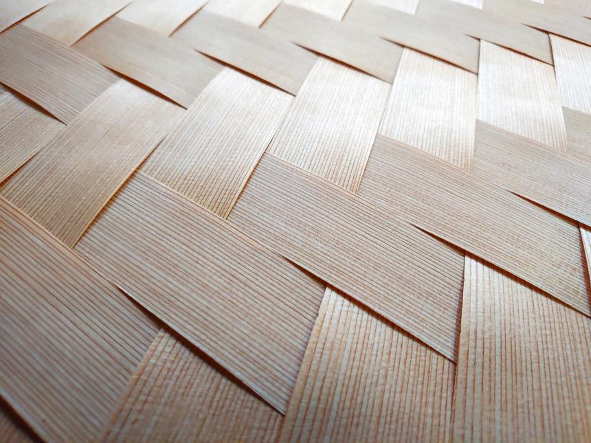 ・杉の単板を編み込み、化粧材としての施工を容易にするためダイライトに貼りあわせた製品。