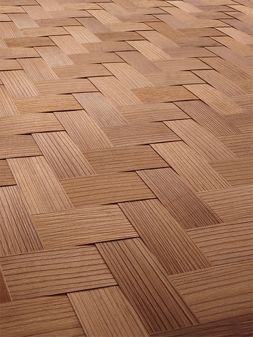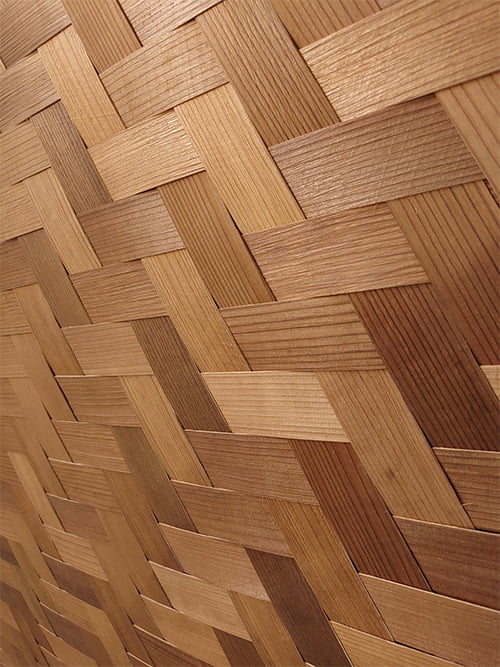 炭化杉柾ヘギ板風圧縮板矢羽根網代