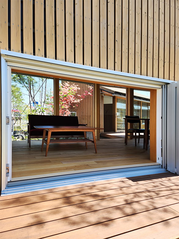 マテリバのスモールハウスは「庭」ソトゴト、「家」ウチゴトを一体の住空間と考えた暮らし方の提案する展示場です。