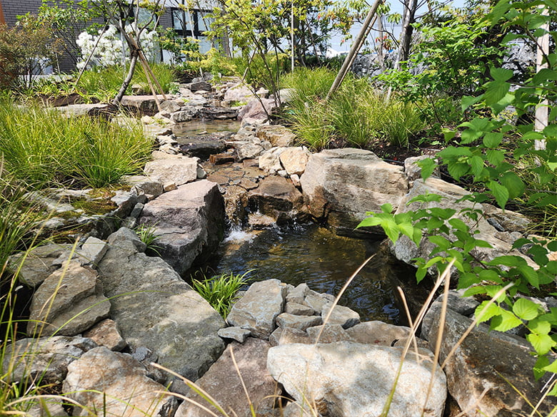 「マテリバ」は、「庭」という自然とふれあう場、風を感じる場を通じて、「庭のある暮らし」が体感できる展示場です。