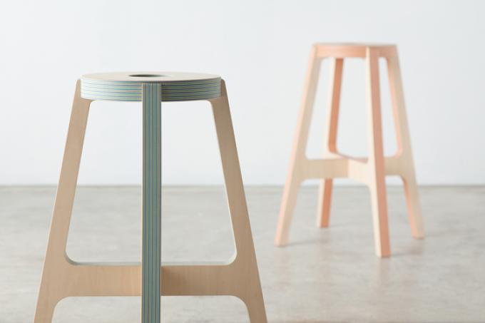 ペーパーウッドは色のついた再生紙をはさみこんだまったく新しい合板です。木口に現れる美しいストライプは、塗装などの後加工では得られない独自の表情と質感を持っています。