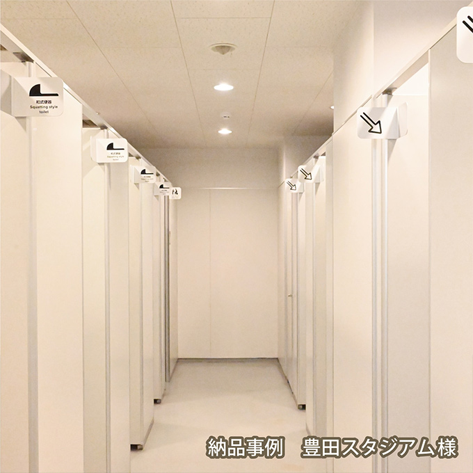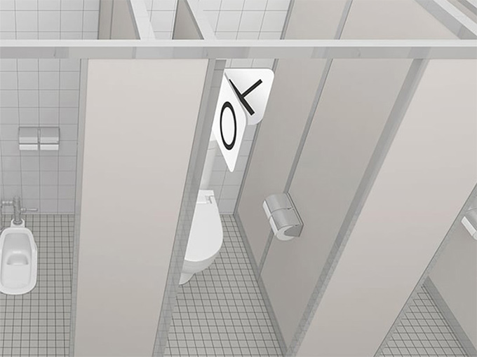 〇(空き)・✕(使用中)札で、トイレの個室の空き状況が一目でわかり、トイレの待ち時間短縮、施設運営効率化に繋がります。