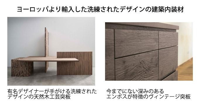 今回はイタリア・ALPI社の天然木工芸突板(新柄)と共に、天然木の突板を古材風に加工し独特な色合いや風合いを漂わせる「タイト ヴィンテージウッド」や、表面にアルミ・銅・ステンレス箔を施しヨーロッパ製ならではの洗練されたデザイン性を誇る「タイトメタル(メタリック化粧板)」、及び「タイトウッド MUKU ITA」の新シリーズで、モノトーン系を中心としたシックなカラーの「アーバンカラーシリーズ」なども展示致します。