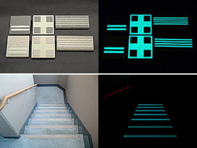 夜間災害時の避難誘導や、停電時の暗闇で足元が見えない危険を回避する『蓄光タイル』