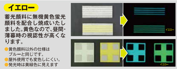 太陽光、蛍光灯などの紫外線エネルギーを吸収し、暗闇で蓄えたエネルギーを可視光線に変換して発光します。俗に夜光とも言われています。
