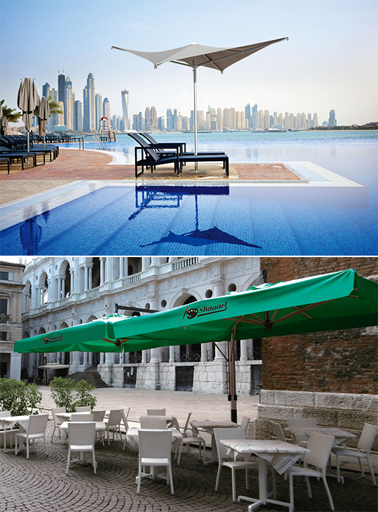 ホテル・レストラン・カフェ等の商業施設の他、住宅にも使用できるパラソルです。