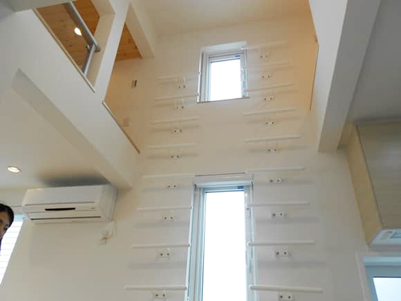 縦型に取り付けて握り棒に。吹き抜け高所窓のメンテナンス用に。