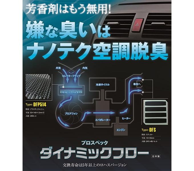 ダイナミックフローDFP514は、エアコンの吸気部分に取り付ける事でクラスター吸気分子をナノテクで極小分子化し、超速空調を行うと同時に車内・室内に漂う様々なニオイの無臭化を一気に行えるプロスペックの高性能パワーチップなんですね!
