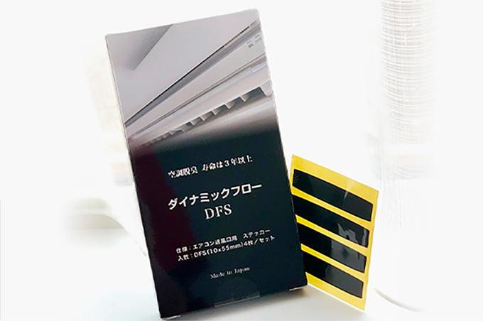 「ダイナミックフロー」は、エアコンや空気清浄機などの送気口や吸気部に取り付けるだけ。