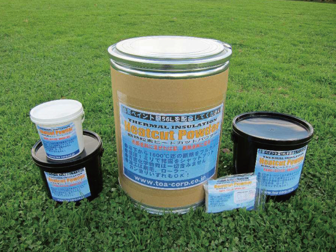 そんな不良在庫塗料にセラミック真空バルーンの断熱粒素「ヒートカットパウダー」を混ぜ合わせる事で、即高性能な遮熱・断熱塗料に変える事が可能です。