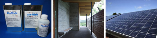 ガラス塗膜の形成で昼夜を問わず降雨による洗浄作用で汚損物質を流し去り被膜の劣化を防ぎ、フリーメインテナンスで長期にわたり初期の被膜を維持します。ATMシールドは建造物の経年汚損と塗膜の劣化を防ぐために開発された超耐久性能ガラスコーティング剤です。