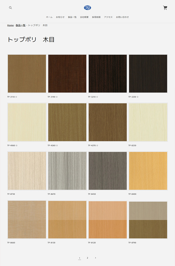 リニューアル開始時は、弊社の主力商品であるポリエステル化粧板をラインナップしております。