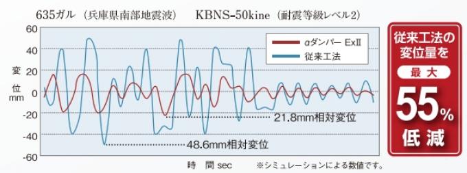 地震による建物の変動の変位を約半分に抑え、損傷と損害額を大幅に軽減します。
