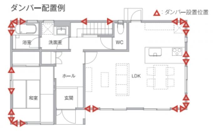 たとえば2階建て・40坪の場合、24本の 設置が基本となります。ダンパーの配置計画は弊社の 専門設計スタッフが行います。