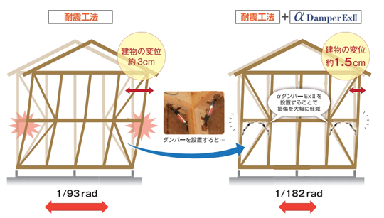 耐震工法に加えることで、地震の揺れを吸収する制震装置「αダンパーExⅡ」。
