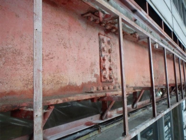 鉄骨造の建物で耐震補強工事を行う場合、事前に鉄骨に吹付けられた耐火被覆材を取り除く必要があります。