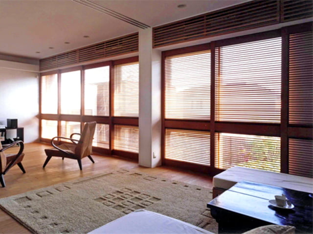 天然木が持つ自然な香りと、木製ブラインドの隙間から差し込む光。木漏れ日のような和らぎを与え、森林浴をしているような住空間を作ります。