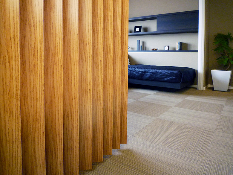 ■半透明スラットは柔らかに光を通し、お部屋をスタイリッシュに彩ります。