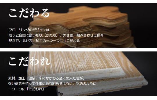 そしてもう一つ、「こだわれ」シリーズは、素材・加工・塗装・床にかかわる全ての人たちが、強い信念を持って仕事に取り組めるよう一つ一つに「こだわれ」という意味を込めた製品です。